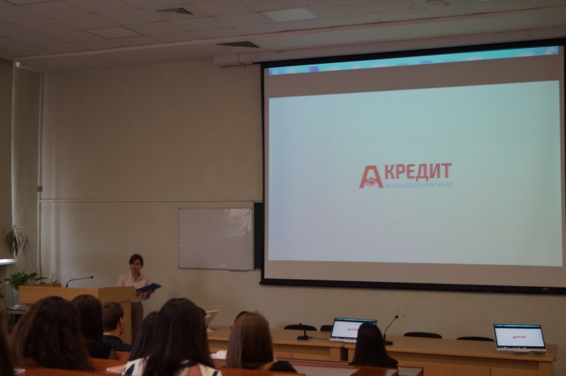 HR-менеджер компании Полина Владимировна Шурупова совместно с доцентом Анной Николаевной Ермаковой презентовали спектр видов деятельности компании. «Альфа Кредит» - динамично развивающаяся организация, расширяющая границы своего бизнеса. А эффективный рост невозможен без целеустремленных, желающих профессионально расти, молодых сотрудников. В рамках обучающего интерактива студенты демонстрировали полученные в вузе знания, участвовали в тренинге «Залог успеха при трудоустройстве», определяли цену себя, как будущего сотрудника. Самые активные получили предложения о собеседовании в центральном офисе компании.