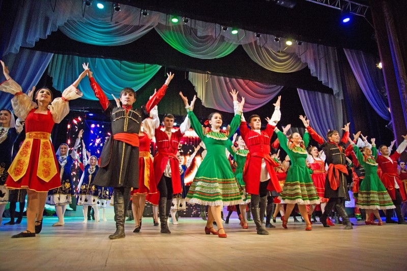 "Friendship has no nationalities" - the so-called first block of the evening's program, which began with the legendary "Song of the Motherland" (V. Lebedev-Kumach and I. Dunaevsky). "My country is wide-ranging ..." was performed by the student choir of the Faculty of Agrobiology and Land Resources. "Kari ochi" in Ukrainian sang Pavlenko Anastasia and Oksana, they came to study at the Stavropol Agrouniversity from the Republic of Crimea. The twirled "Merry Crossing" continued smooth and incendiary Avar and Mountain dances, ensembles "Lel" and "Sudarushka" liberated the audience with Russian folk and Cossack songs. And then somehow miraculously united a stunning patriotic flash mob together, and there was no difference what nationality the artist was.