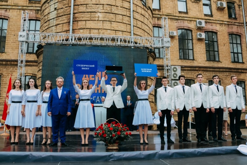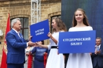 Dedicated to the students, the rector Vladimir Ivanovich Trukhachev presented the symbolic Key of Knowledge from the Temple of Education and Science, the Record Book and the Student's Card.