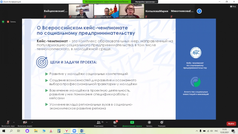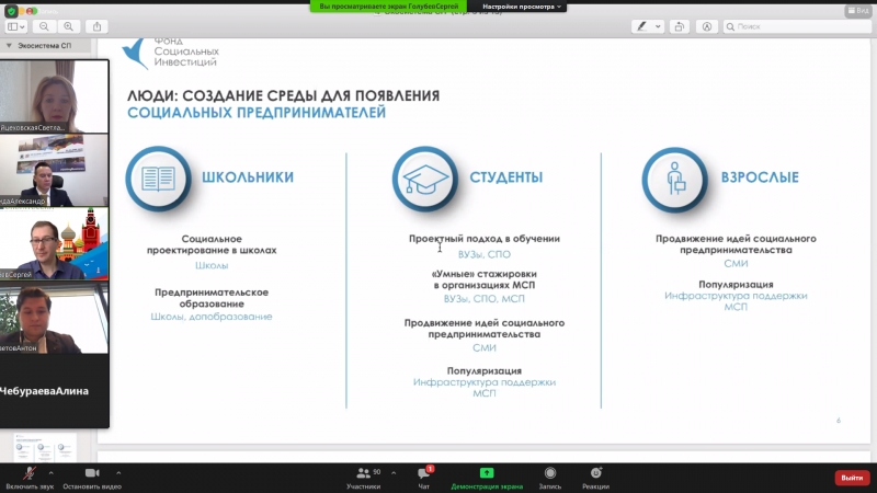 The online roundtable made it possible to gather more than 90 participants from various regions of Russia and exchange views on the prospects for the development of youth technological and social entrepreneurship.