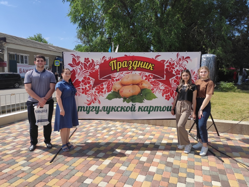 Employees and students of Stavropol State Agrarian University visited the IV Tuguluk holiday - the New Potato Festival. The University was represented by Associate Professor of the Department of Production and Processing of Food Products from Vegetable Raw Materials of the Faculty of Agrobiology and Land Resources Maria Vladimirovna Selivanova, 4th year students of the direction "Agronomy" Anna Apanasenko, Sabir Mekhtiyev, and a student of the Faculty of Secondary Vocational Education Daria Shchetinina. The participants of the festival were welcomed by the head of the Grachevsky municipal district Sergey Leonidovich Filichkin and his deputies.