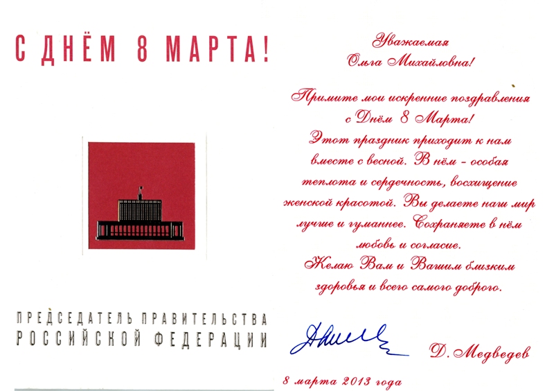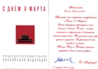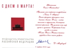 Congratulations on the International Women's Day of Presidency of the Government of the Russian Federation