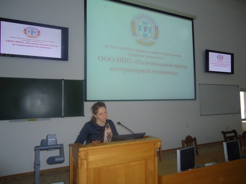 The event was opened by the Dean of the Veterinary Medicine Faculty, Doctor of Veterinary Science, Professor Valery A. Belyaev. The Vice Dean of the Faculty, the chairman of the council of young scientists and specialists of the Faculty, Cand. Sc. Biology, Evgeniya V. Safonovoskaya gave a report about the laboratory facilities of the faculty, the main opportunities and prospects of cooperation.