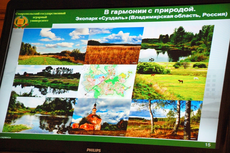 During the first day of the conference, participants heard reports from the Deputy Minister of Agriculture of the Stavropol Territory V. Serbin "Status and prospects of investment in the agricultural sector of the Stavropol Territory" another speaker is the head of soil processing laboratory of "Stavropol Research Institute of Agriculture" Y. Kuzychenko "Improving basic of soil for crops field rotations in different soil types of Stavropol Territory". Another speakers were: doctor of agricultural sciences, professor of "Processes and machines in agribusiness" N. Rudenko with the report "Innovative technological and technical solutions for soil and crop"; Doctor of Veterinary Science, professor of pharmacology and therapy, Dean of the Veterinary Medicine Faculty, V. Belyaev with the report " Prospects for transgenesis and cloning of farm animals for the Russian agro-industrial complex"; head of the department of ecology and landscape construction, doctor of science, professor I. Lysenko with the report "Analysis of the biological resources of the Stavropol Territory"; PhD, associate professor of tourism and service department K. Mikhailova with the report "Prospects for development of eco-tourism and eco - farming in Stavropol Territory."