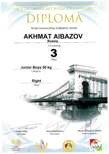 Третье место завоевал студент 1 курса экономического факультета СтГАУ Ахмат Айбазов на 39-м Первенстве мира среди юниоров по армрестлингу, проходившем в венгерской столице Будапешт.