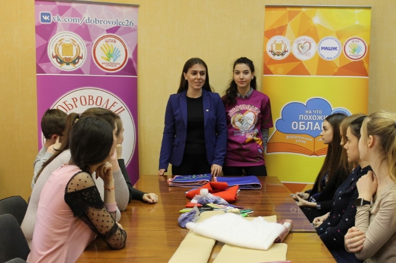 Студенты встретились с представителями ПОО, чтобы реализовать проект «На что похожи облака?» победителя грантового конкурса форума «Машук – 2018» Инны Кулиевой. Проект направлен на создание тактильных книг для слепых и слабовидящих детей, тактильная книга – это книга, выполненная из ткани, содержащая аппликации, объемные фигуры и другие атрибуты, которые способны передать внешний вид предмета. Благодаря таким книгами слабовидящие и полностью лишенные зрения дети познают окружающий их мир.