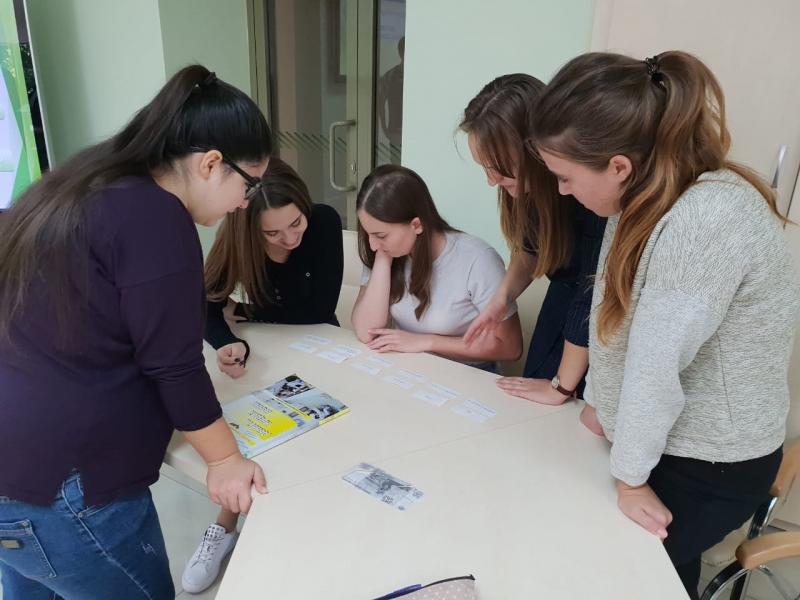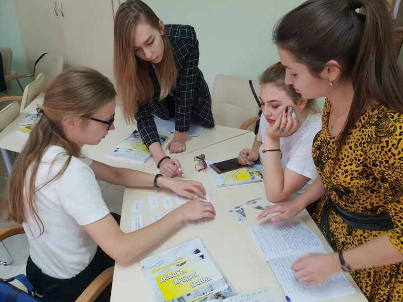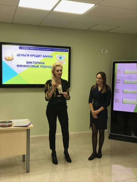 Во второй половине занятия студенты, поделившись на команды, приняли участие в деловой игре. Им предстояло выполнить задания викторины, решить финансовые ребусы и головоломки, продемонстрировав свою эрудицию в области познания мира денег.