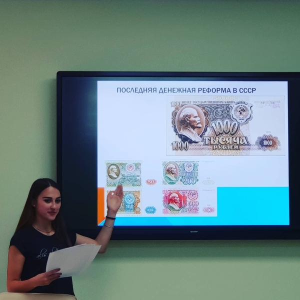 На кафедре «Финансовый менеджмент и банковское дело» состоялось интерактивное практическое занятие со студентами 2 курса 1 группы направления подготовки «Экономика» профиль «Бухгалтерский учет, анализ и аудит» по дисциплине «Деньги. Кредит. Банки» на тему «Эволюция форм и видов денег: путешествие во времени» под руководством заведующей кафедры Скляровой Ю.М. и доцента Лапиной Е.Н.