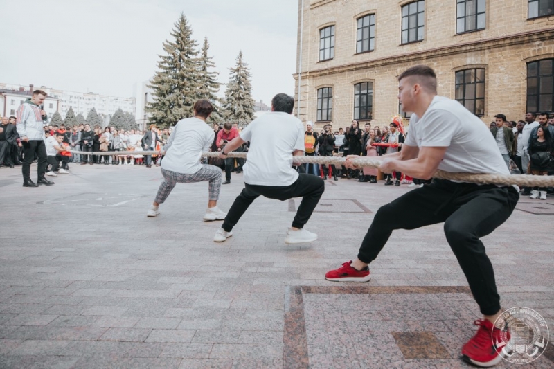 Студенты представили свои уникальные подворья, показали подготовленные творческие номера, а веселые коробейники развлекали зрителей и делились угощениями. Самым зрелищным конкурсом оказались соревнования по перетягиванию каната.
