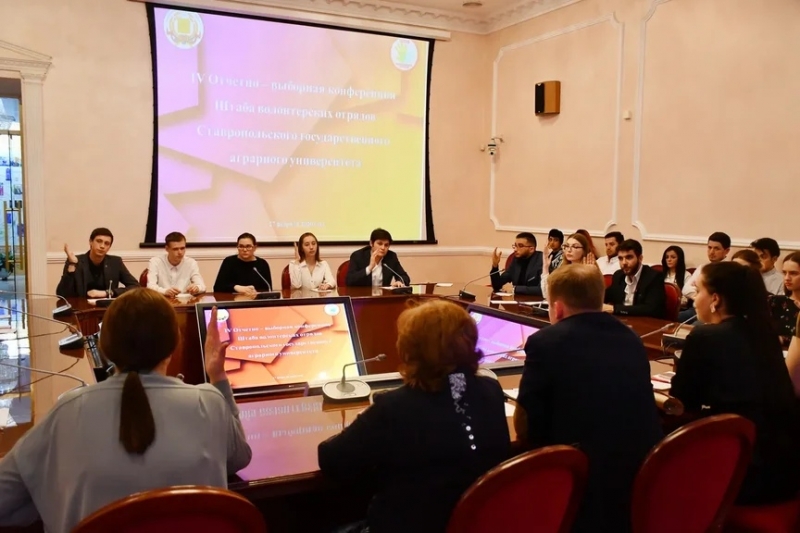 В Аграрном университете состоялась отчетно-выборная конференция Штаба волонтерских отрядов СтГАУ. Совещание проходило на 2-х языках: были вынесены на обсуждение вопросы об изменении состава Штаба, а также о дальнейшей деятельности волонтерских отрядов.