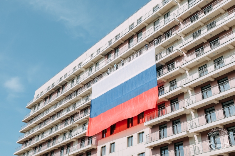Самый большой триколор украсил фасад студенческого общежития Ставропольского ГАУ