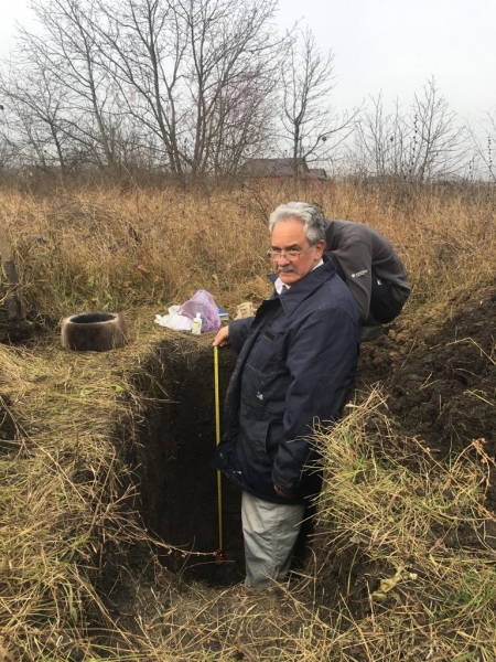 Заведующий кафедрой почвоведения, доктор сельскохозяйственных наук, профессор Валерий Сергеевич Цховребов, аспирант кафедры из Ирака Ал-Дарраджи Морван Мохаммедом, лаборанты кафедры Борзенко Виктор и Берлёв Леонид провели исследования целинных почв рядом с погребенными почвами кургана-могильника около г. Иноземцево. Эти исследования необходимы для изучения эволюции почв в эпоху современного голоцена.