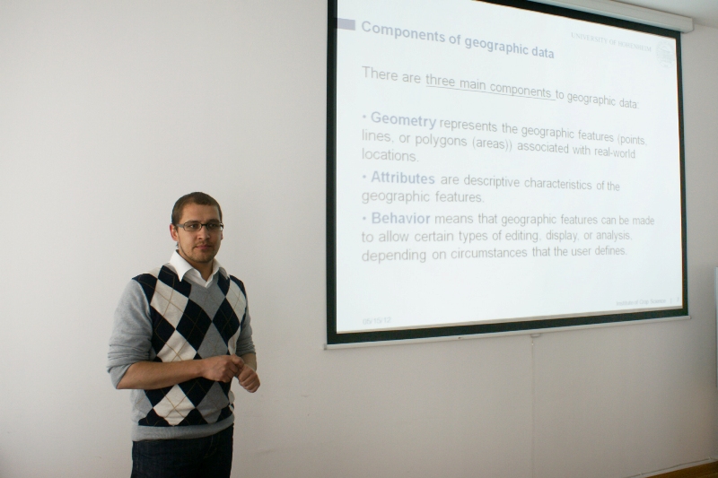 В рамках открытых занятий для студентов факультета механизации сельского хозяйства и агрономического факультета доктор Кристоф Зеха рассказал о высокоточных технологиях в сельском хозяйстве, географических информационных системах, телематических системах для обеспечения управления, обработке изображений для сельскохозяйственных целей, применении сенсорных датчиков и сенсорных технологий в растениеводстве.