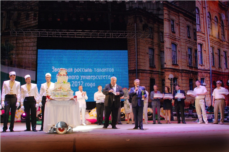 Открыл гала-концерт ректор университета, член-корреспондент РАСХН, профессор В.И. Трухачев: «Сегодня мы гуляем. И это правильно. Я только сейчас подписал приказ о награждении лучших студентов, а это 360 человек, денежными премиями в размере от пяти до восьми тысяч рублей. Мы своих ребят любим и всегда готовы их поощрять».