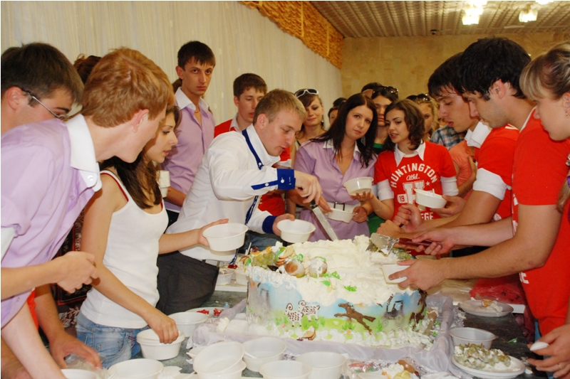 Настоящим подарком для всех присутствующих стал огромный торт-мороженое (более 150 кг) от директора ОАО «Холод» Виктора Васильевича Соломко, который не только поздравил ребят, но и вместе с ректором вуза, членом-корреспондентом РАСХН, профессором Владимиром Ивановичем Трухачевым прямо на сцене подписал договор о дальнейшем сотрудничестве. В свою очередь, Владимир Иванович вручил почетному гостю кубок «Самый лучший, самый вкусный друг студенчества СтГАУ» и пожелал ребятам таких же хороших, надежных партнеров по жизни: «С Виктором Васильевичем и его командой нас связывает большая дружба. 1200 студентов аграрного университета ежегодно бесплатно выезжают летом отдыхать на черноморское побережье, в туристической базе «Альбатрос». И конечно, этот год не станет исключением».