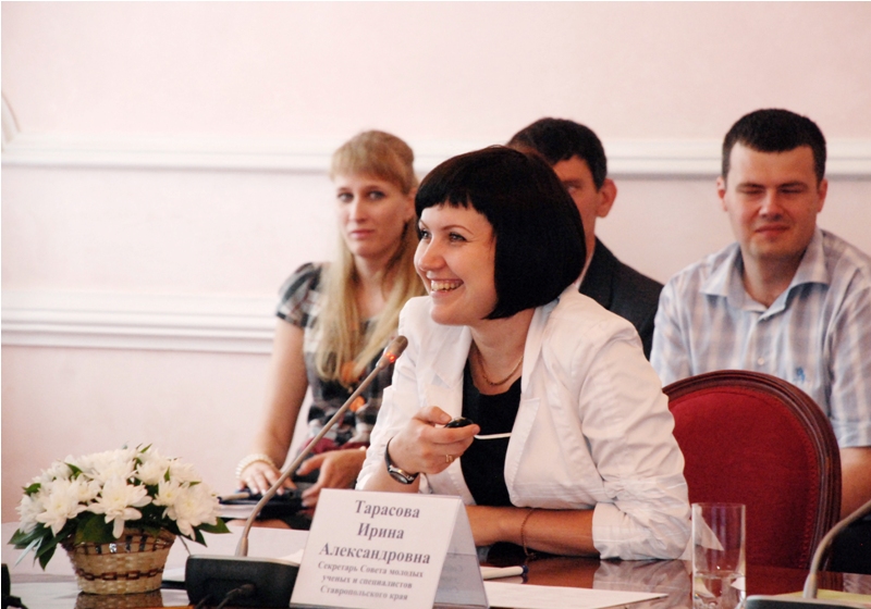В рамках заседания председатель совета молодых учёных и специалистов СК В.Ю. Морозов рассказал присутствующим о роли совета в вовлечении молодёжи в инновационный процесс и перспективы его дальнейшего развития. «Нашими главными задачами являются проведение конкурса «У.М.Н.И.К.», ряда семинаров по фаиндрайзингу, участие в совете молодых учёных СКФО, законотворческая и нормотворческая деятельность в области молодёжной политики, взаимодействие со СМИ и пропаганда образа молодого учёного» - подчеркнул Виталий Юрьевич. Секретарь СМУиС И.А. Тарасова в своем выступлении подробнее остановилась на изменениях в структуре совета.