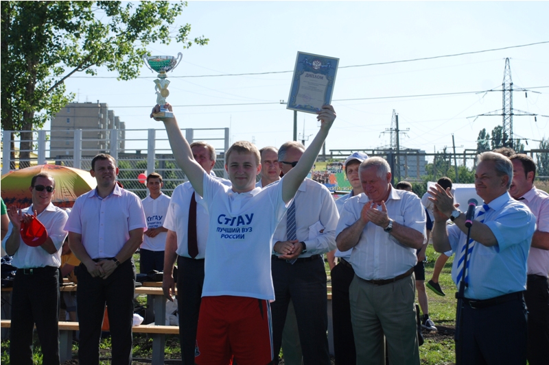 Участников праздника поприветствовал Юрий Васильевич Белый: «Я вспоминаю времена, когда сам был студентом. У нас ничего не было. За это время университет преобразился. Сейчас он действительно зокопорщик здорового образа жизни, зокопорщик весомых спортивных достижений среди студенчества нашего родного Ставропольского края. Сегодня вы первые среди студенчества! Поздравляю вас и желаю удачи, успехов и всего самого лучшего!». К поздравлениям присоединился Сергей Николаевич Асадчев: «В Ставропольском государственном аграрном университете всегда было традицией совмещать спорт, труд и учебу. От имени губернатора Ставропольского края хочу пожелать вам продолжать традиции вуза по спортивному воспитанию молодежи. Я надеюсь, что с этих полей будут уходить спортсмены и на чемпионат мира по футболу в 2018 году, и на многие олимпиады. Так держать!». Василий Александрович Скакун в свою очередь выразил слова благодарности ректору СтГАУ за заботу о молодежи: «Под лежачий камень вода не течет. И только те люди, которые преданно служат своему делу, своему Отечеству, добиваются каких-то результатов. Как сказал великий академик Вавилов, чем больше Бог на тебя взвалит, тем больше добрых дел ты можешь сделать. И вот Вы, Владимир Иванович, один из них. С новосельем Вас!».