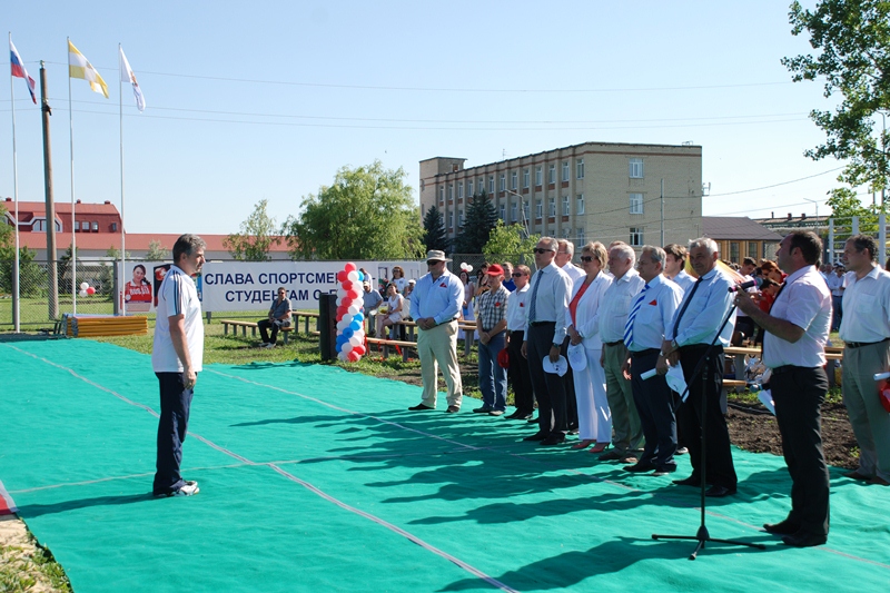 Открыл церемонию ректор СтГАУ, член-корреспондент РАСХН, профессор Владимир Иванович Трухачев: «Ставропольский государственный аграрный университет много делает для поддержания у ребят стремления к активному, здоровому образу жизни Спортивно-оздоровительный комплекс вуза – один из лучших на Юге России. На днях он получил официальное назначение спортивного зала европейского качества. Мы единственный университет, который имеет такой грант. прохождение медосмотра дает гарантии что справка в гаи абсолютно легальной, медицинский центр специальный единственный центр имеющий своих врачей Психолога Наши студенты – чемпионы Европы, мира и Олимпийских игр. Ставропольский ГАУ – дважды победитель Всероссийского конкурса «Вуз здорового образа жизни». И мы не собираемся останавливаться на достигнутом. И открытие самой большой спортивной площадки под открытым небом в крае этому подтверждение! Всем хорошего настроения, благополучия, добра и стойкости духа!»