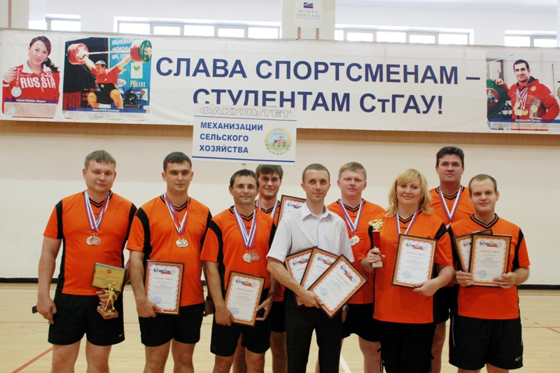 В Ставропольском ГАУ прошло торжественное закрытие XII Спартакиады среди сотрудников университета. За право называться самыми сильными и лучшими сражались спортсмены в командном и личном первенстве по одиннадцати видам спорта: мужской стритбол, настольный теннис, шахматы, волейбол, мини-футбол, армспорт, дартс, гиревой спорт и плавание.