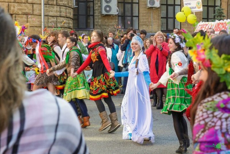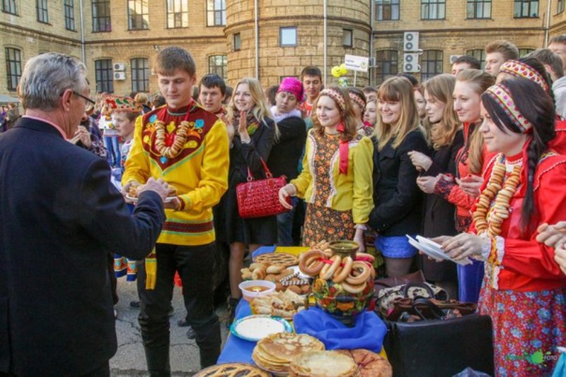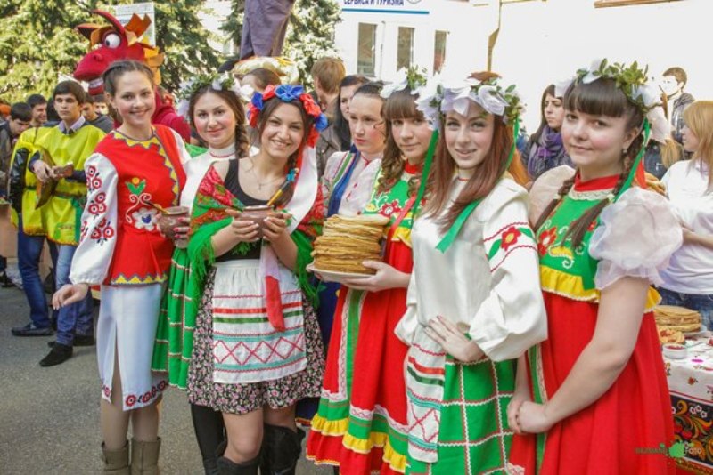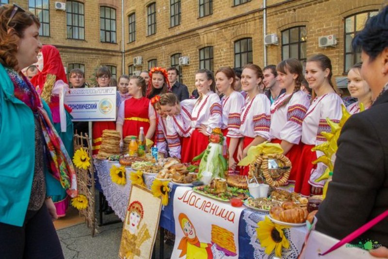 Внутренний двор 14 марта 2013 г. Ставропольского государственного аграрного университета на один день превратился в пышное подворье. Девять факультетов представили свои блинные галереи, чучела Масленицы и творческие номера. Но победителей в этот день выбирать не стали, потому что главной целью праздника было объединение всех студентов университета.