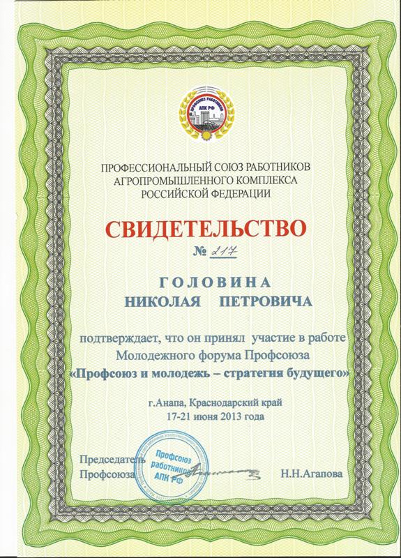 С 17 по 21 июня 2013 г. председатель первичной профсоюзной организации студентов СтГАУ Николай Головин принял участие в профсоюзном форуме «Молодой профсоюзный лидер – 2013»