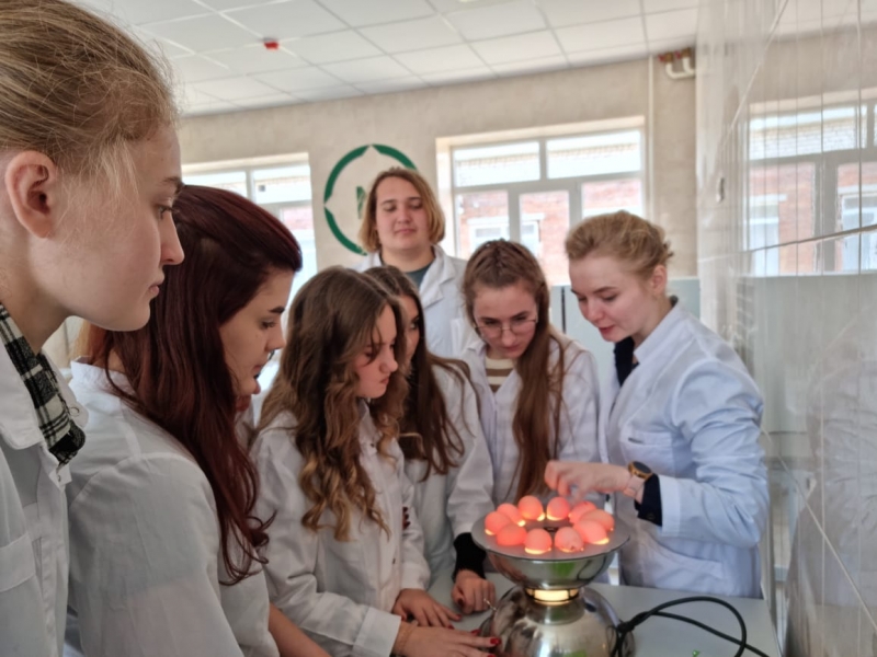 Студенты ознакомились с методикой проведения ветеринарно-санитарной экспертизы яиц с использованием специализированного оборудования, а также с самыми распространенными пороками яиц, при которых снижается их пищевая ценность.