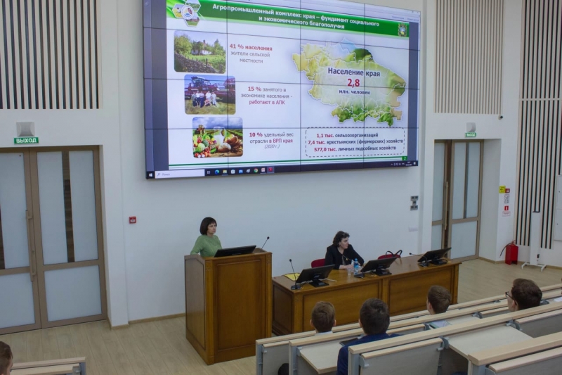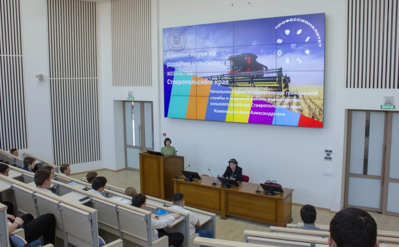 Студенты познакомились с перспективными направлениями развития сельскохозяйственной отрасли Ставропольского края, экономикой сельского хозяйства, направлениями импортозамещения в растениеводстве, животноводстве, мерами государственной поддержки по развитию сельского хозяйства, направленными на поддержку инвестиционной активности, с реализуемыми в крае инвестиционными проектами, внедрёнными в реальный сектор сельского хозяйства Ставропольского края.