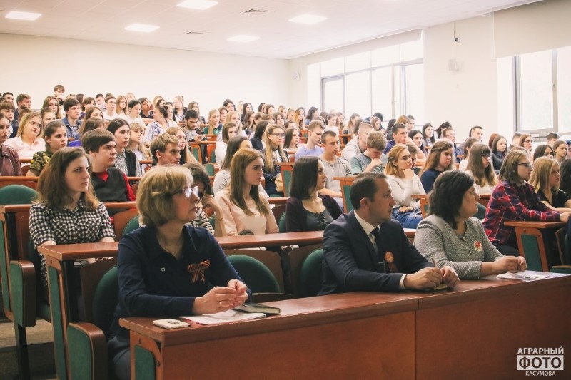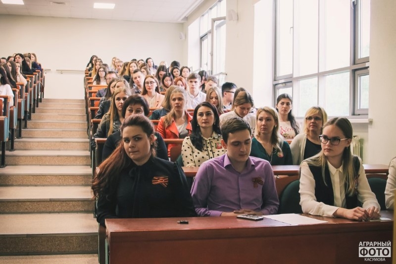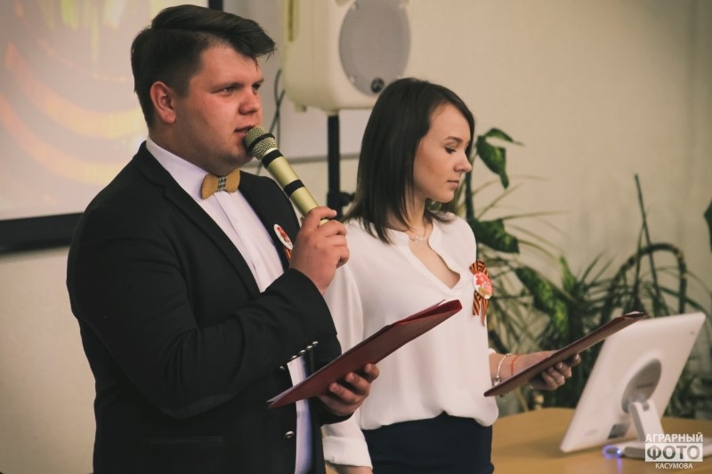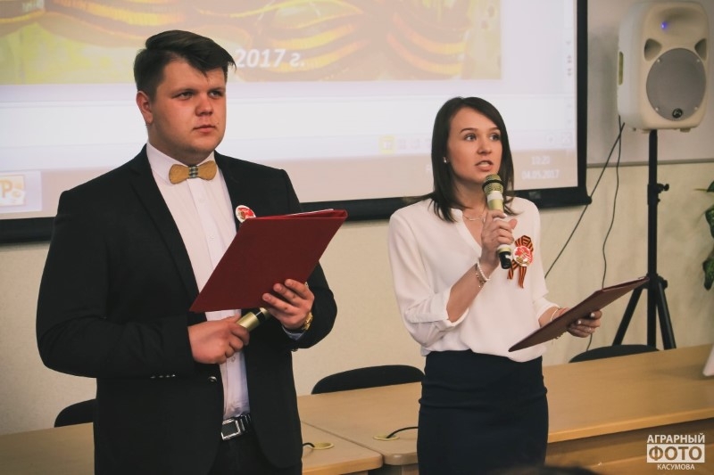 They remembered one of the participants in the Great Patriotic War - the teacher of the economic faculty Belozyorov Petr Anatolyevich. He was wounded, awarded with medals "For Courage", "For Victory over Germany", the Order of the Patriotic War of the 1st degree. The guys read his poems about the Victory, and then all those present paid a minute of silence to those who died in the harsh years of the Great Patriotic War.